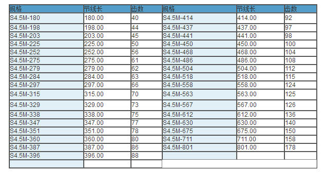 同步帶技術(shù)參數(shù)