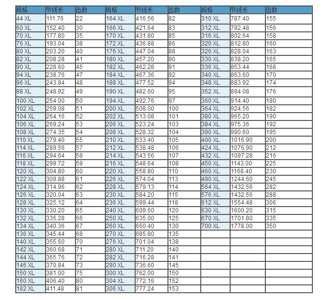 同步帶技術參數