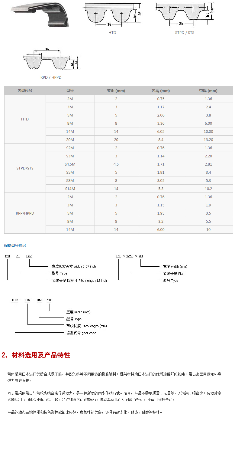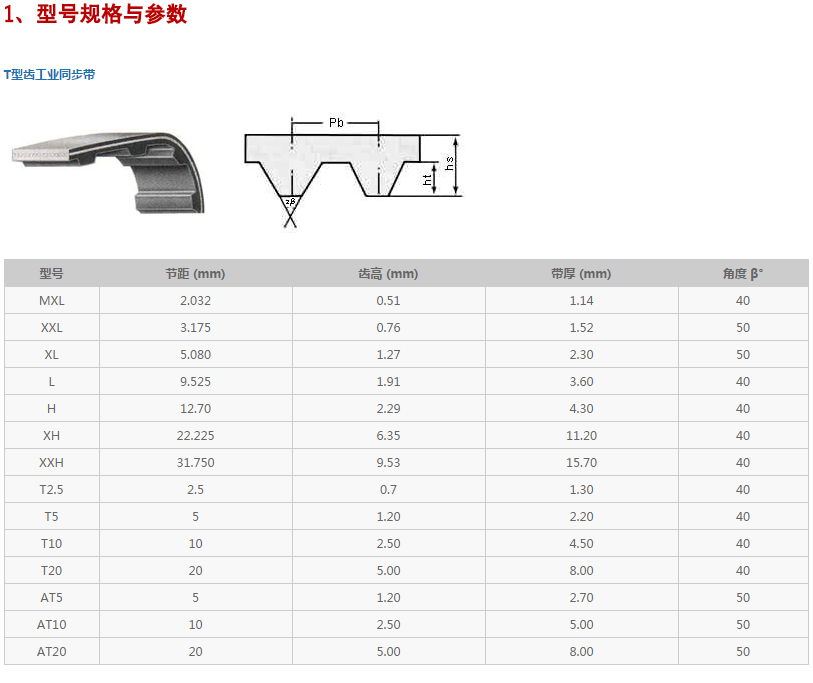 同步帶技術參數